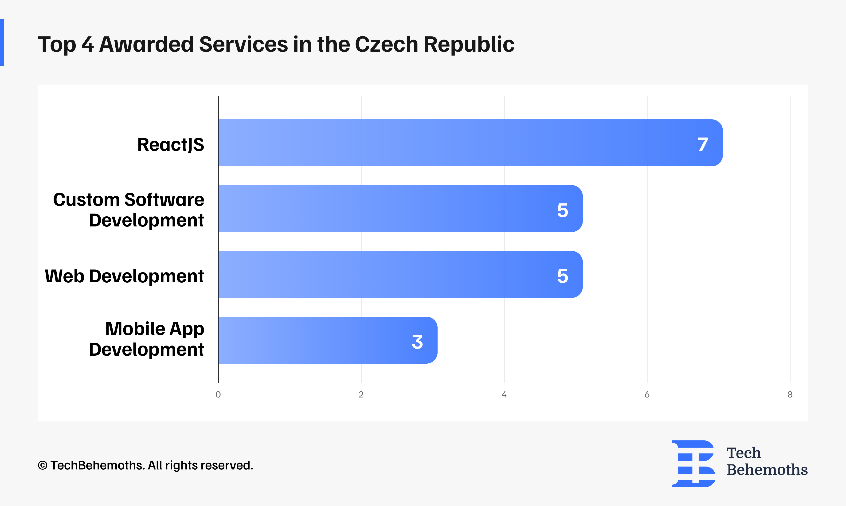 The most awarded services were ReactJS, Custom Software Development, and Web Development, followed by Mobile App Development.