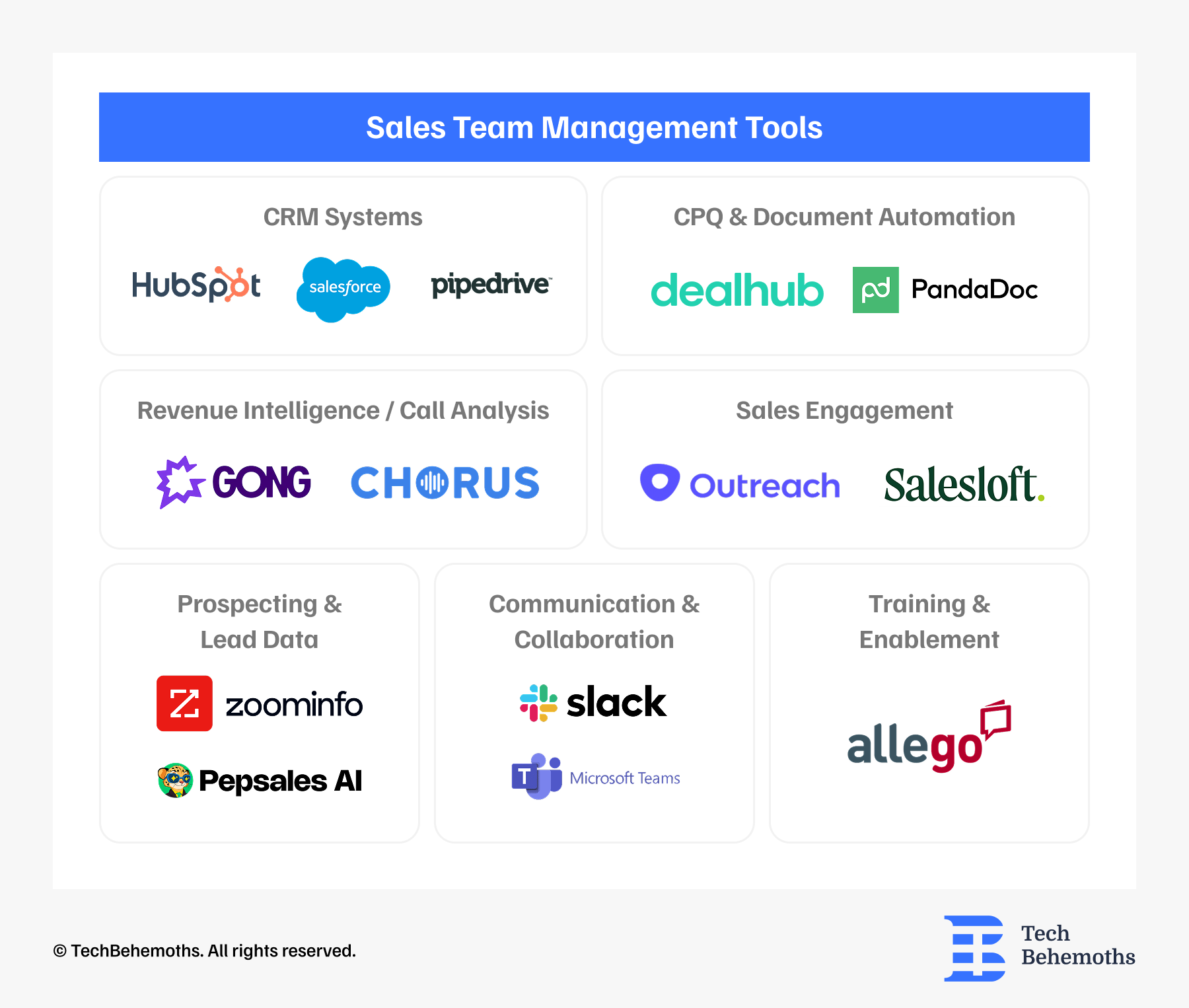 → Platforms for training the sales team, which provide materials, coaching and examples of best practices.