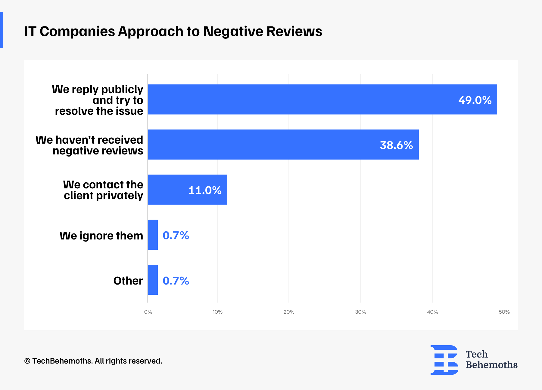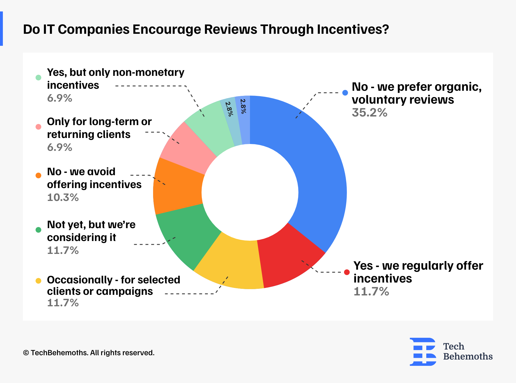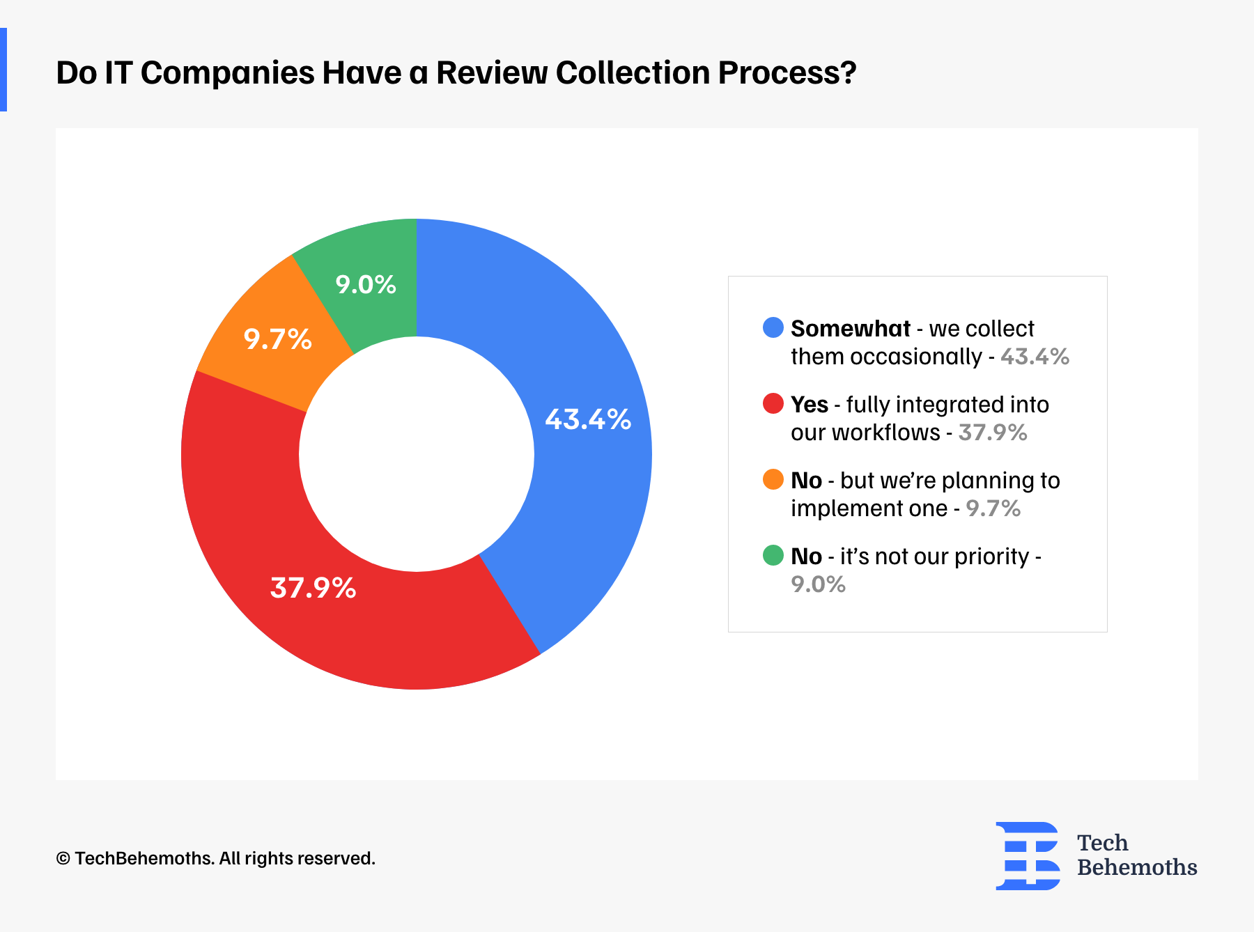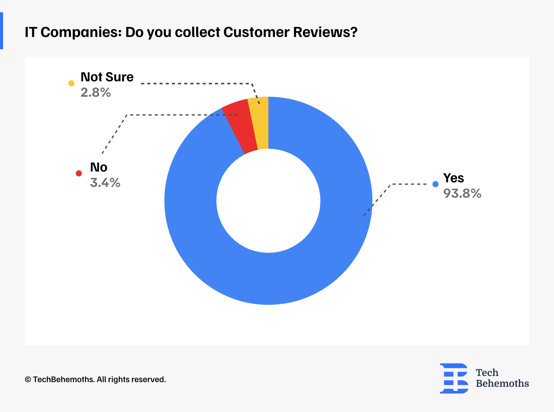 According to TechBehemoths’ survey, IT companies are actively implementing processes to collect customer reviews: