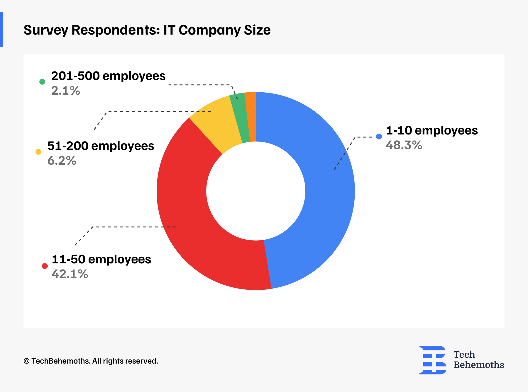 - Small IT companies (<50 employees) make up nearly 90% of survey participants.