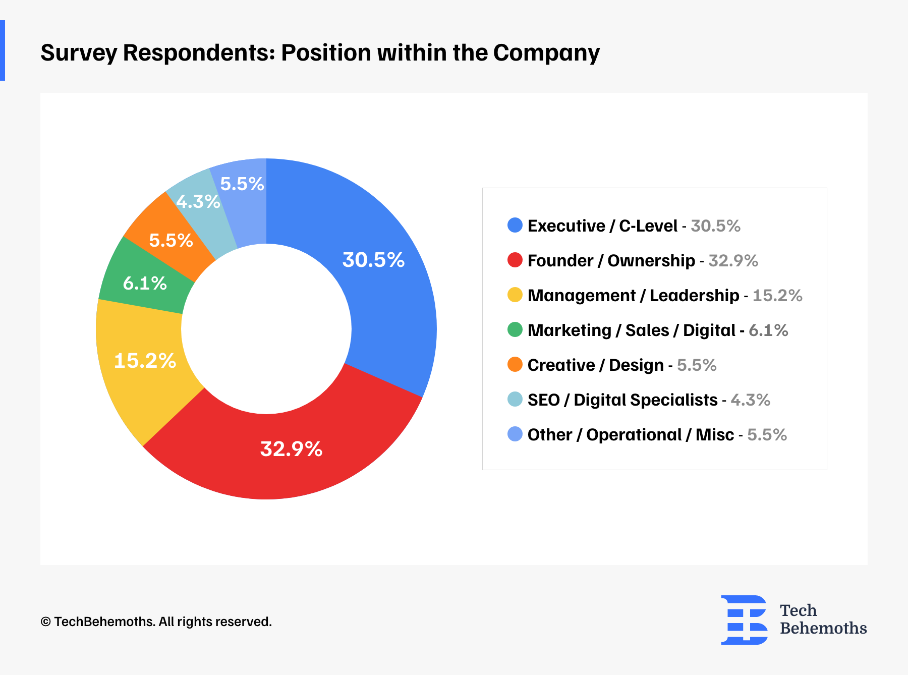 Executives and C-Level professionals (30.5%) together with Founders/Owners (32.9%) account for more than 60%, showing that most perspectives come directly from decision-makers.