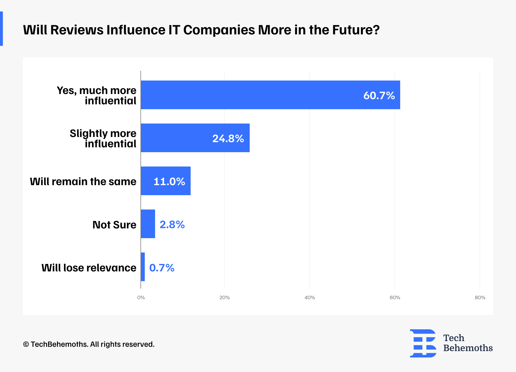 In 2025, customer reviews will be a key indicator of trust for IT companies. According to TechBehemoths' survey of 2,300 companies from 50 countries reveals: