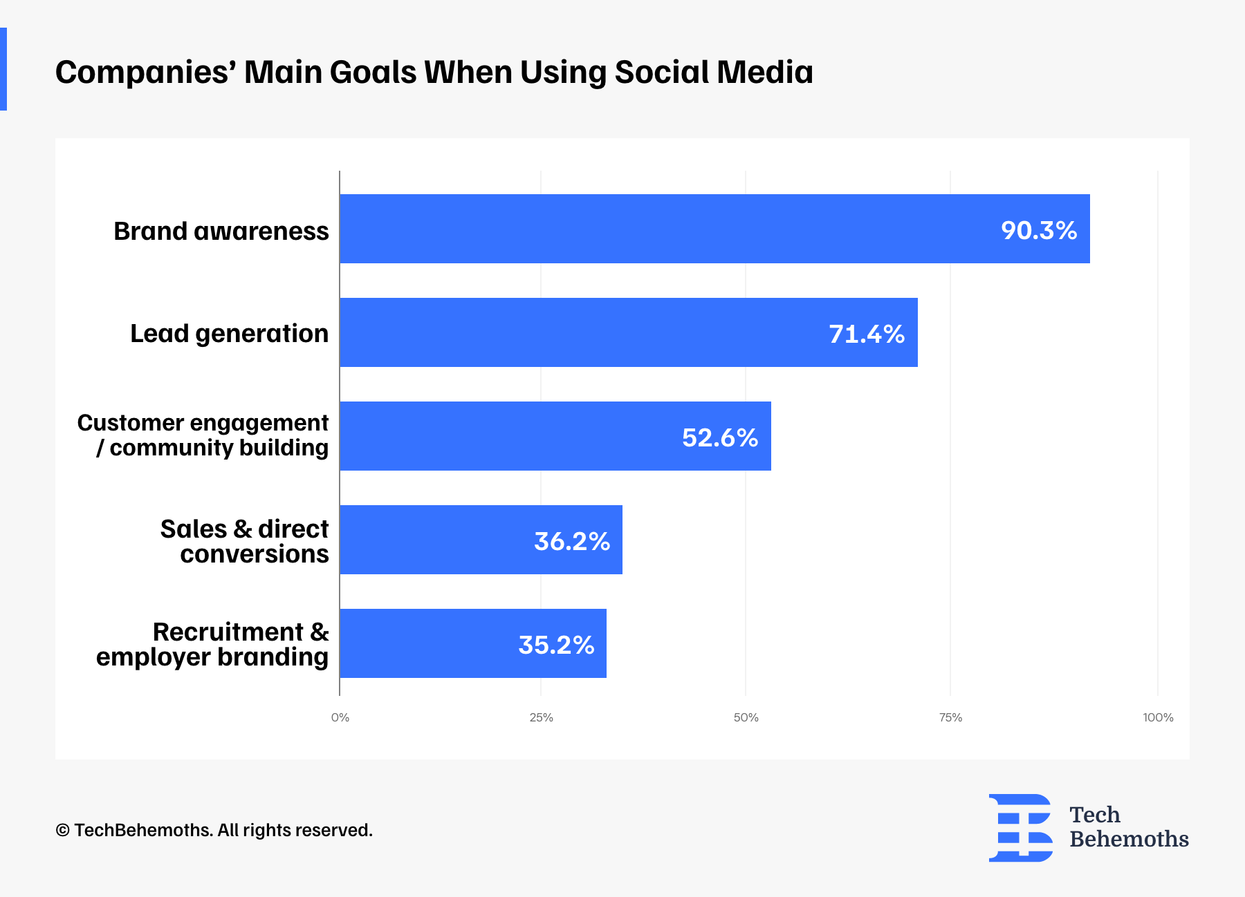 Brand awareness is the top priority at 90.3%. This means most businesses consider social platforms essential for visibility and recognition.