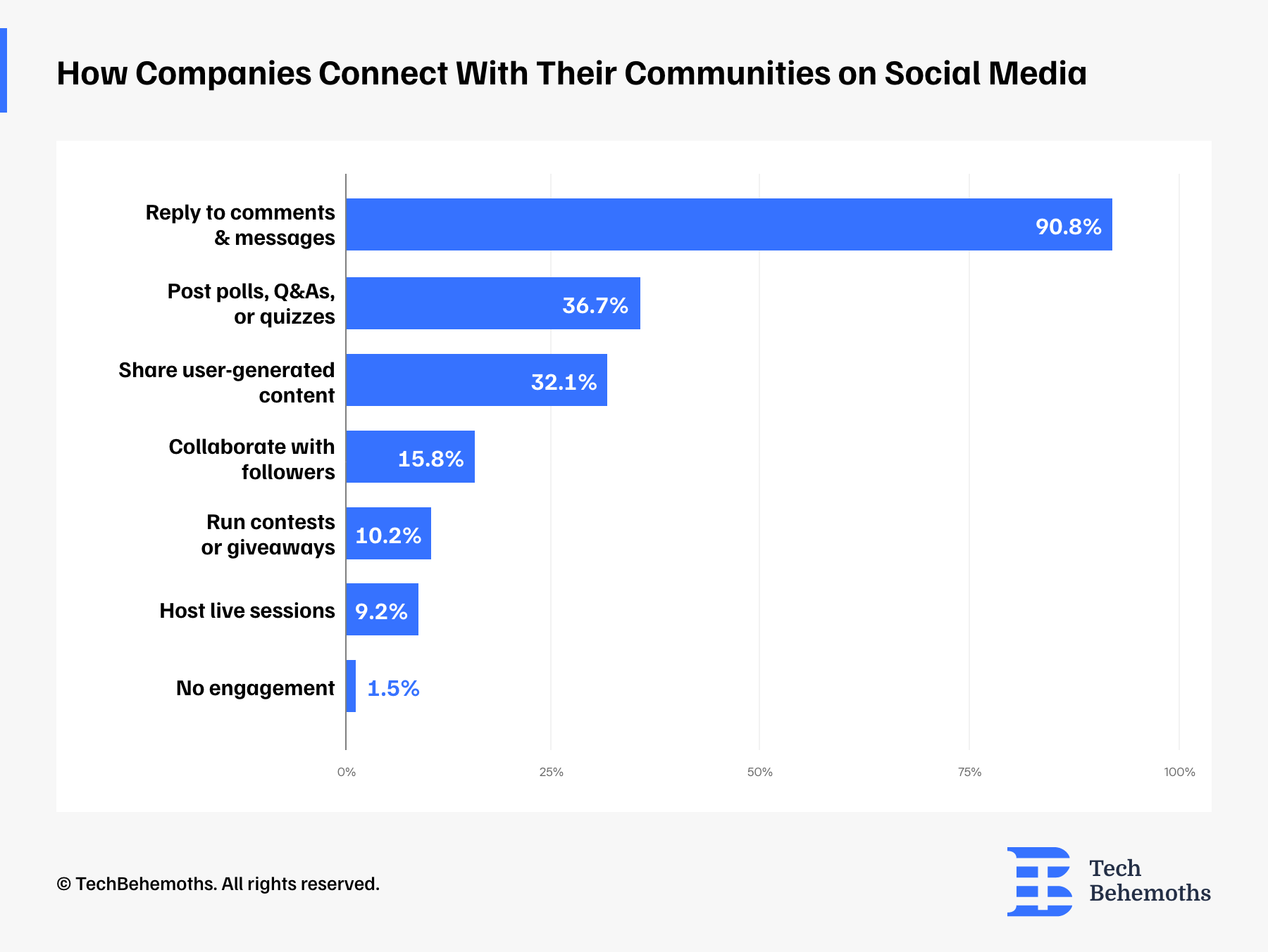 Only 1.5% of companies reported no engagement at all, suggesting that nearly all businesses value active interaction with their community.