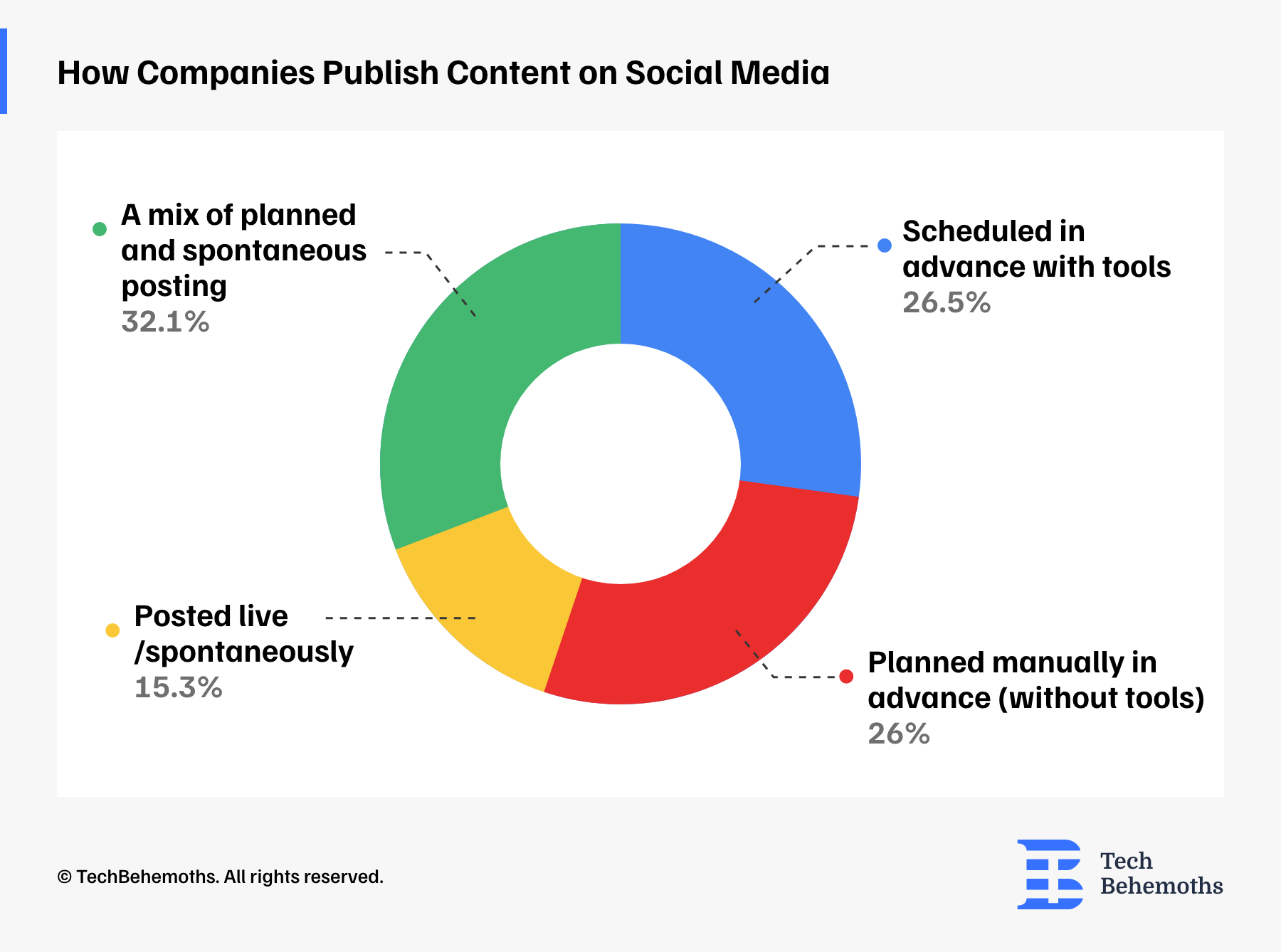 When asked how they usually publish content on social media, companies reported a variety of approaches: