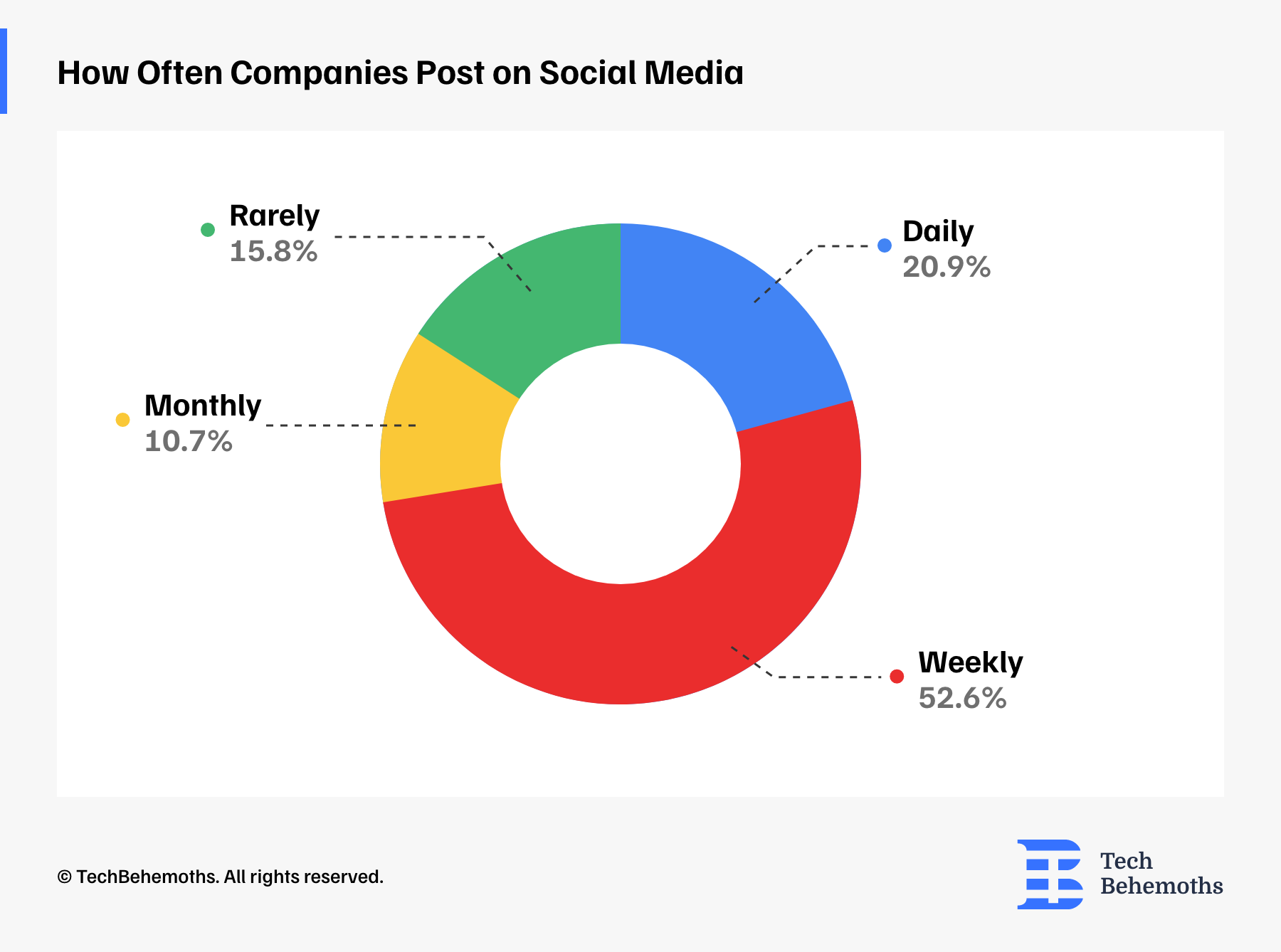 When asked how often companies post on social media, over half (52.6%) told us they post weekly. About 20.9% post daily, which shows they are actively engaging with their audience and staying relevant.