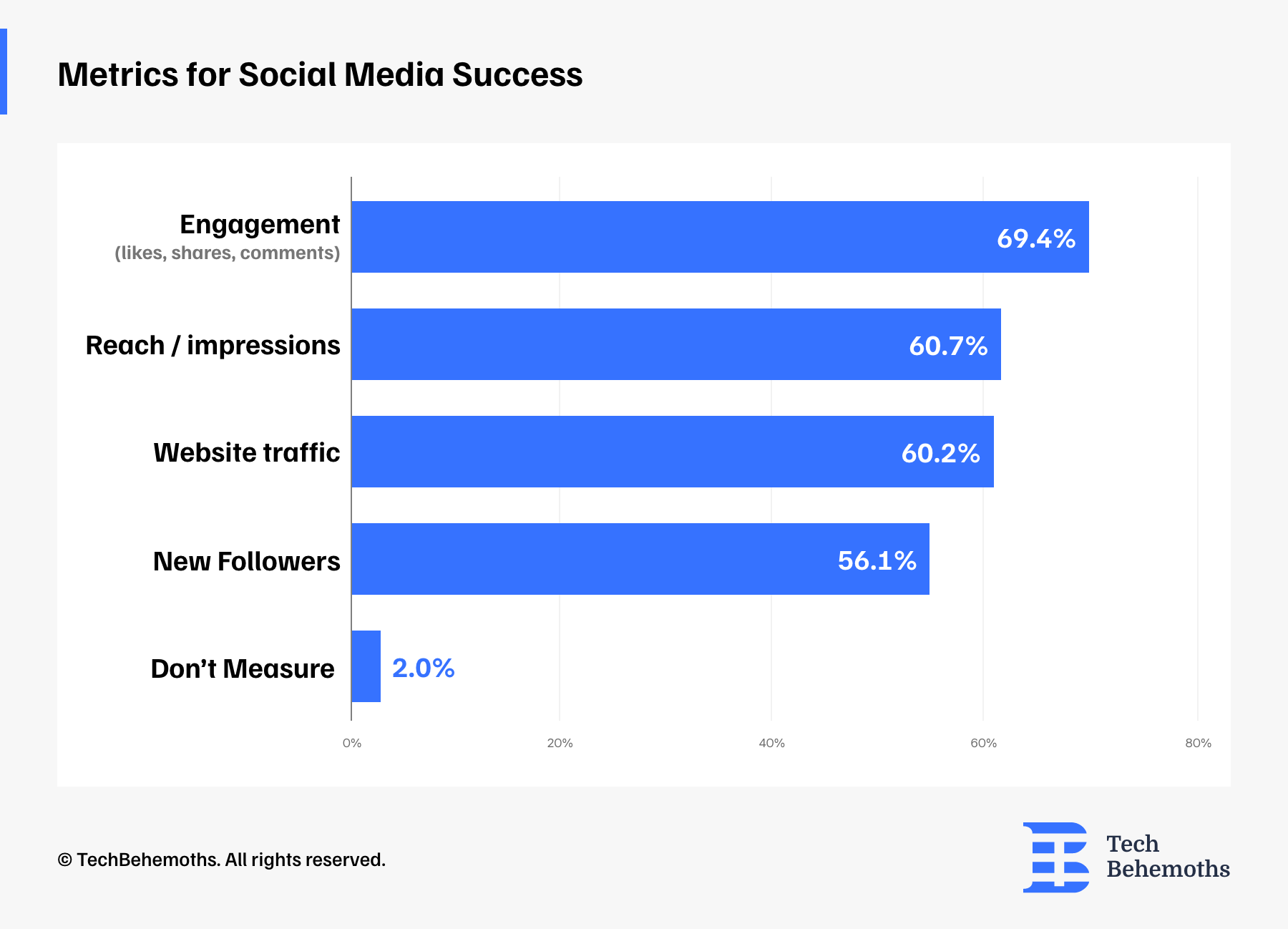 - Reach and impressions (60.7%) highlight the need for content to be visible to the right audiences.