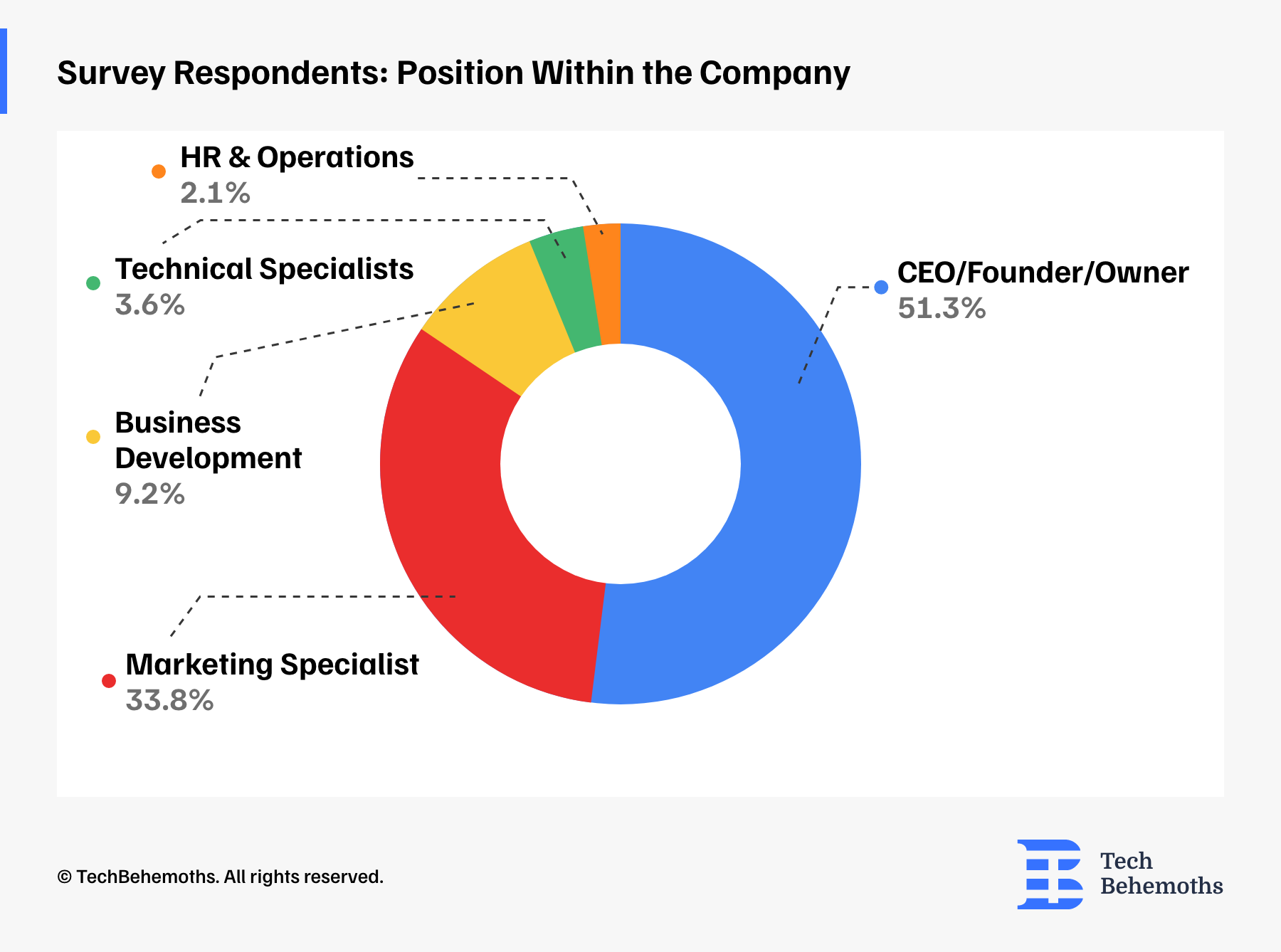 In addition to diverse demographics, respondents also hold diverse roles within their companies. Over half of the respondents are CEOs and founders (51%), indicating their strong involvement in social media strategies within their companies. Following them are marketing specialists (34%), who have a central role in putting strategies into action.