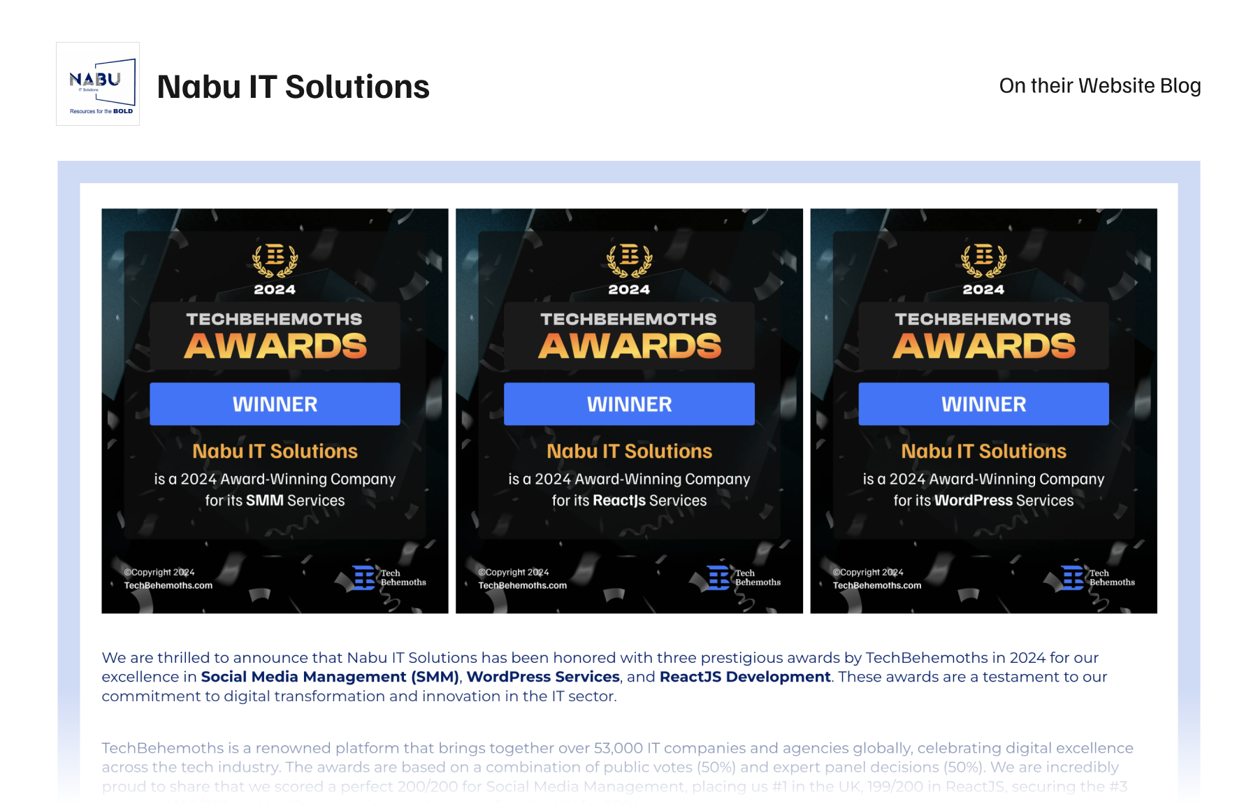 The TechBehemoths Awards celebrate the most trusted and impactful IT companies in the world, the people behind them, their work, and their results.