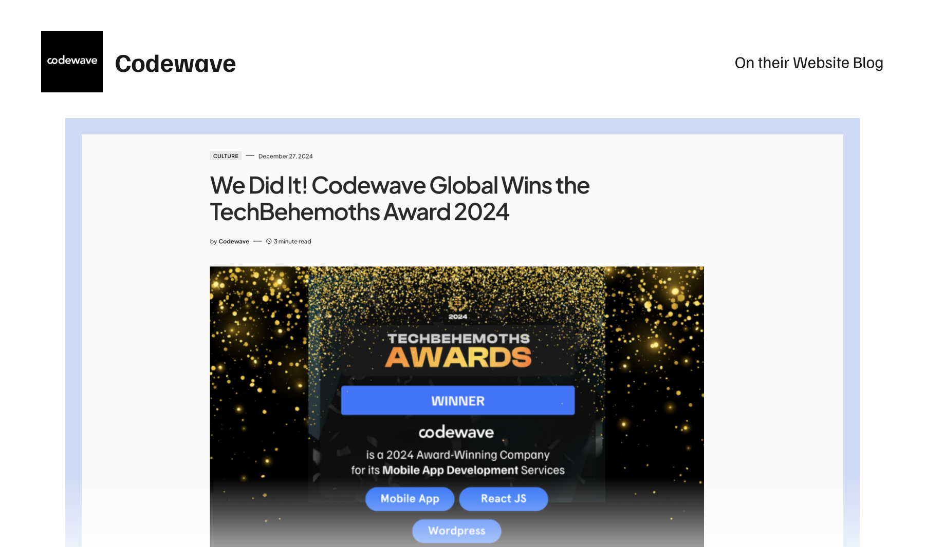 Our 2025 survey showed that companies displaying the TechBehemoths Award badge are 73% more likely to sign a new client.