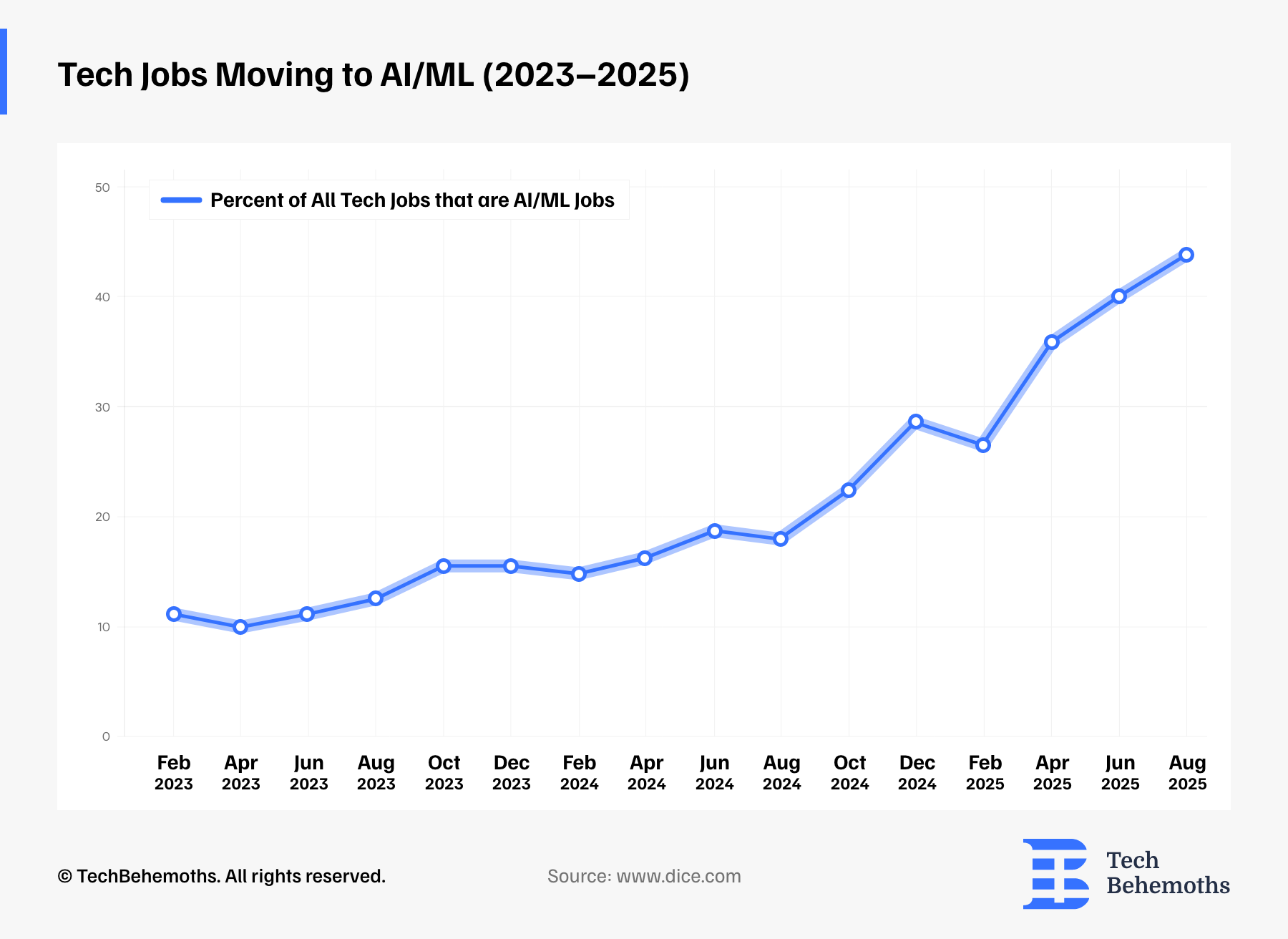 78% of tech roles require AI skills, reflecting a major shift in job requirements.