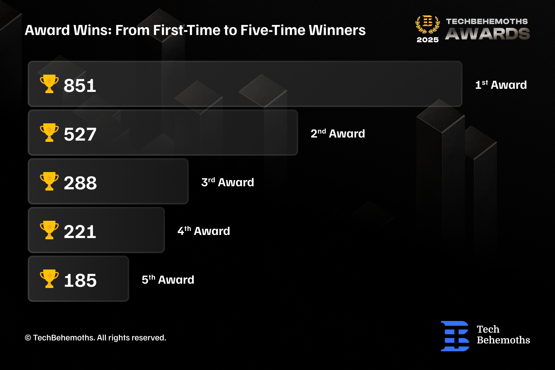 - 851 companies earned their first TechBehemoths Award in 2025, marking a strong debut.