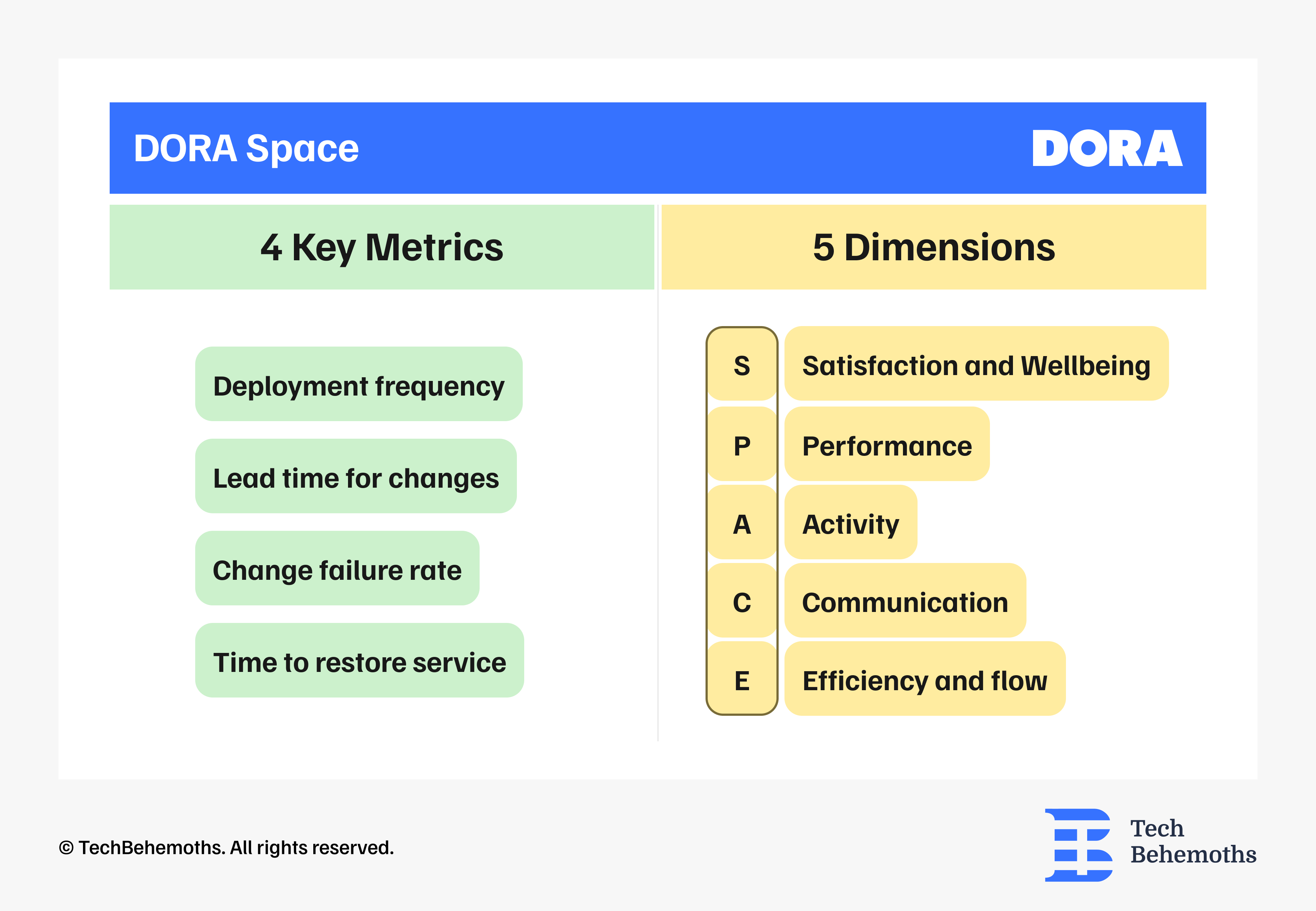 Unlike DORA, SPACE looks at how teams work and collaborate, not just how fast they deliver.