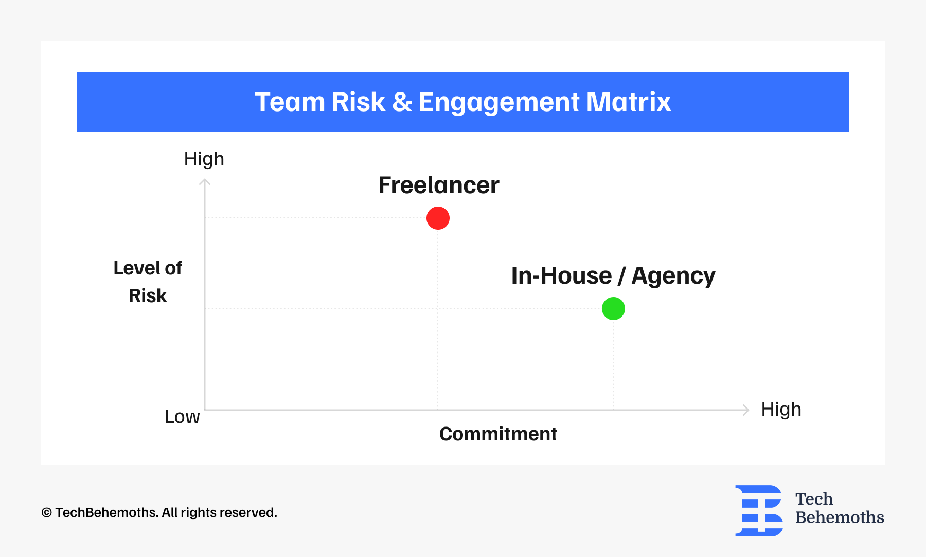 For critical or long-term projects, this risk is catastrophic. An in-house team or dedicated agency can maintain engagement; a freelancer is not obligated to.